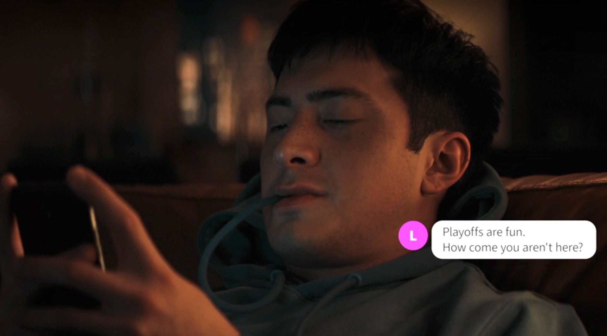 We know that Scott lost his parents at a young age and was basically raised and financially supported by his hockey family. It is shown and implied that they are really all he has and, yet, when the championship game is over, he appears incredibly alone as all his teammates welcome their families onto the ice to celebrate. But he’s not actually alone, and he knows this. In this moment, it finally seems to hit him that the only one standing in the way of his belonging is himself.