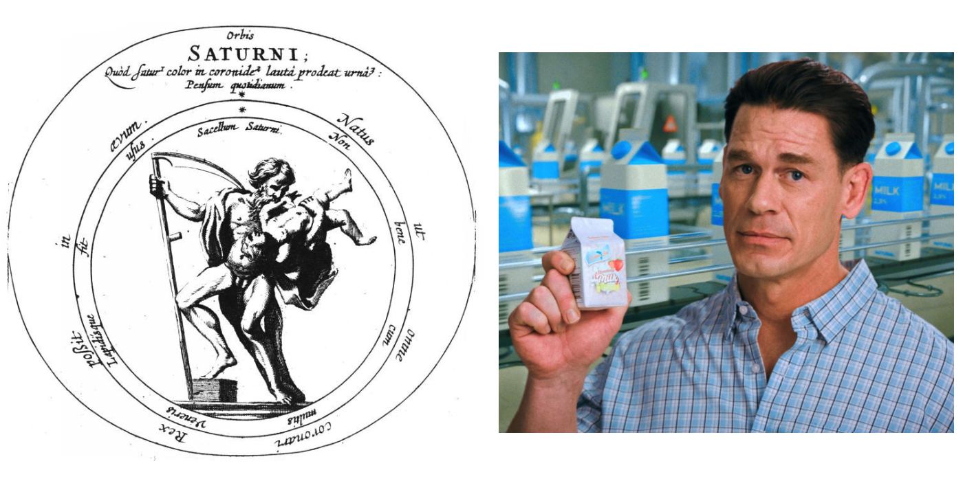 Transitioning into a more sinister exploration of these energies, let’s get into Pluribus and its connection with the signification of Saturn that correlates with starvation and death. In the myth of Saturn/Kronos, God of time, when rulership over Saturn’s domain is threatened he devours his own children so they cannot overtake him. This mythological theme appears in Pluribus when the joined, who we can conceptualize as representing the Neptune archetype, threaten Saturn’s realm of the material and individuated world.